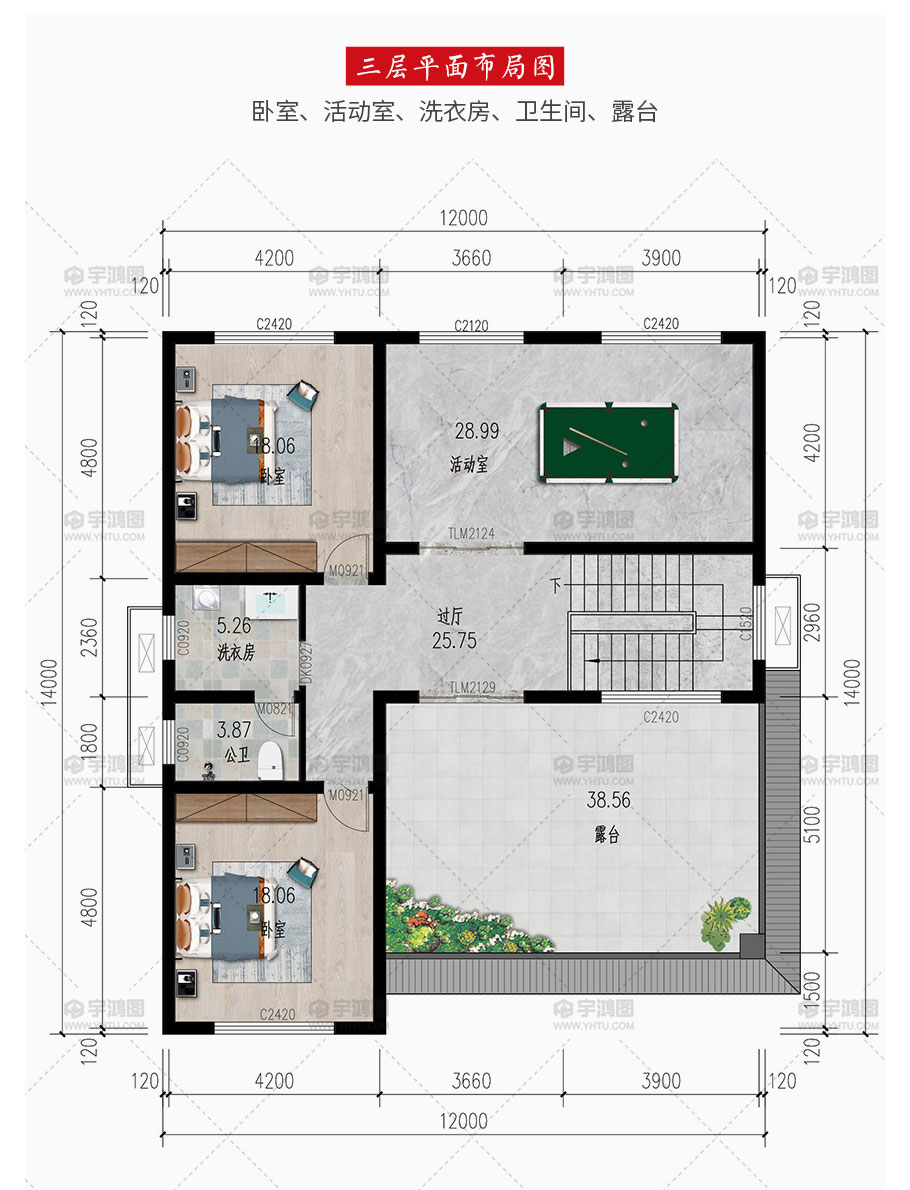 開間:12米 | 進深:14米 | 占地面積:156平方米 | 建筑面積:434.6平方米 |