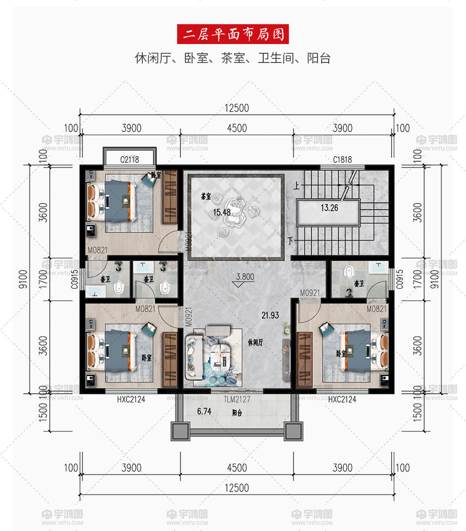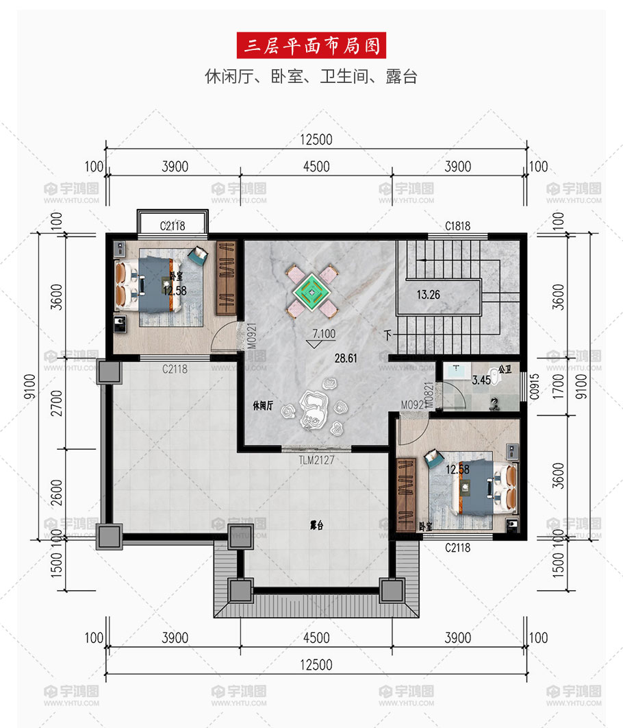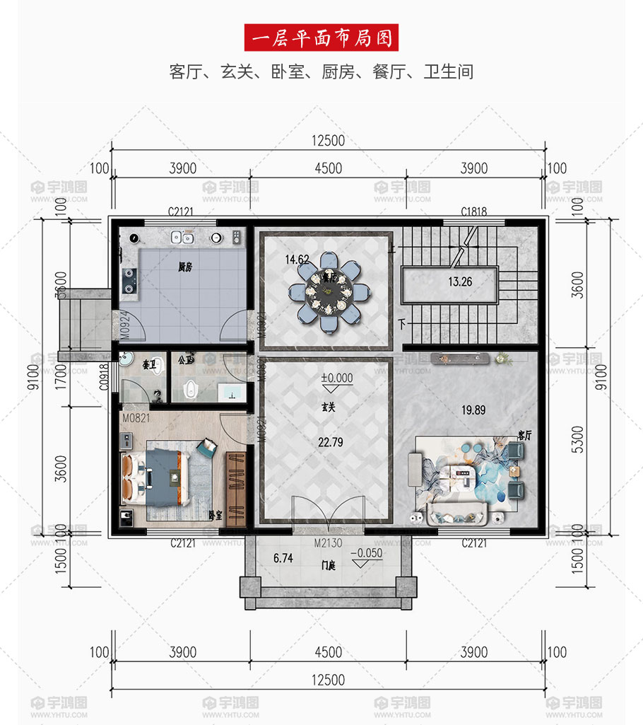開(kāi)間:12.5米 | 進(jìn)深:9.1米 | 占地面積:121平方米 | 建筑面積:321.1平方米 |