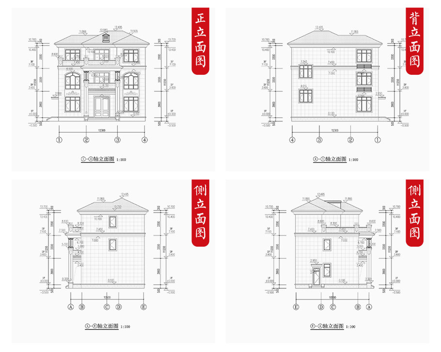 建筑圖: | 建筑平面圖:一層平面圖,二層平面圖,三層平面圖; 建筑立面圖:東立面圖,西立面圖,南立面圖,北立面圖,剖面圖; 大樣圖:樓梯詳圖,細(xì)部大樣,門窗大樣 |