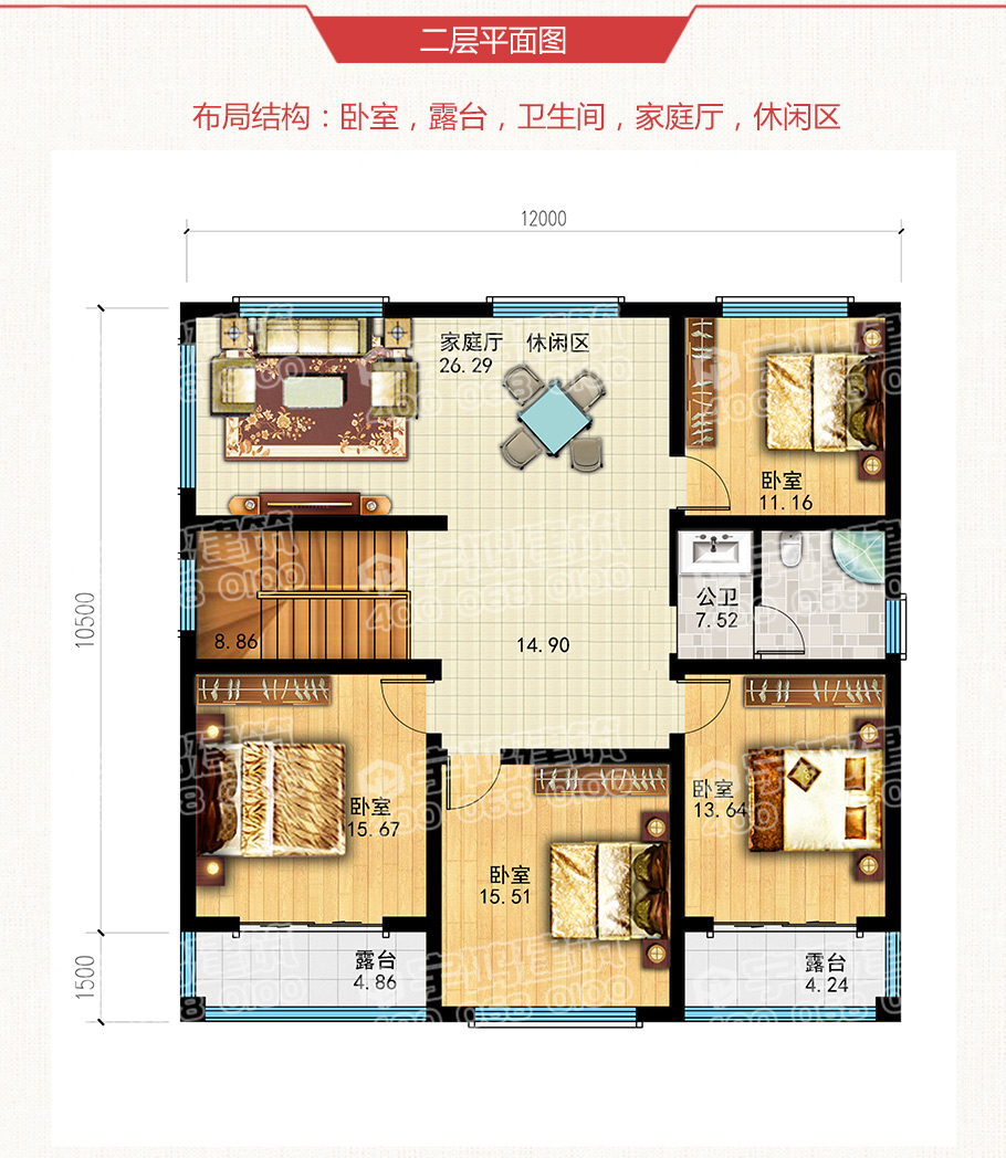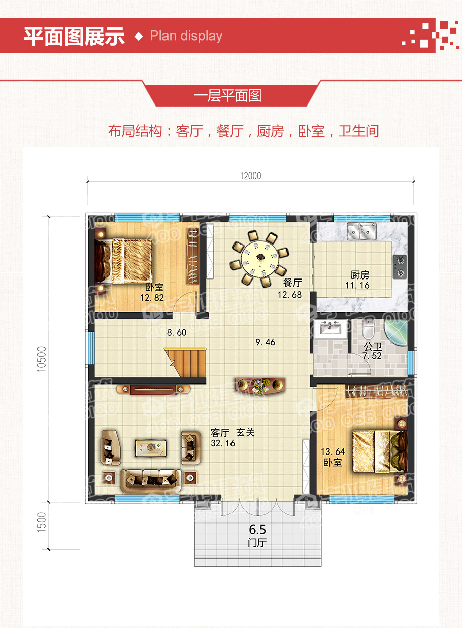 開間:12米 | 進深:12米 | 占地面積:144平方米 | 建筑面積:258.5平方米 |