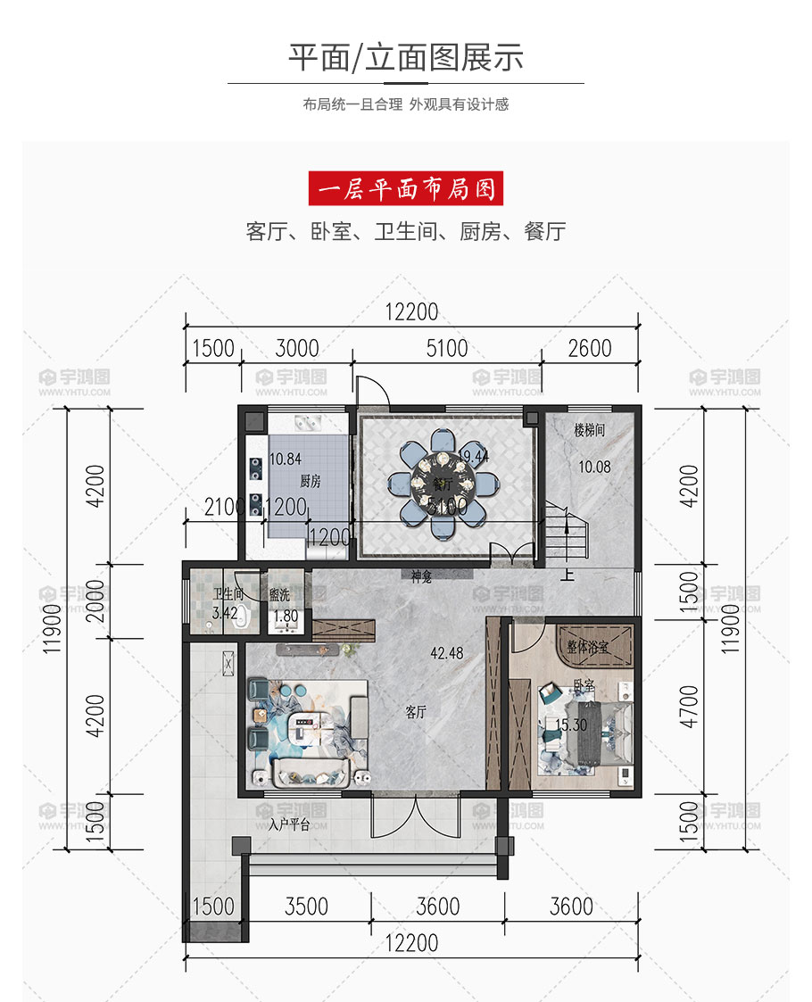 開間:12.2米 | 進深:11.9米 | 占地面積:138平方米 | 建筑面積:322平方米 |