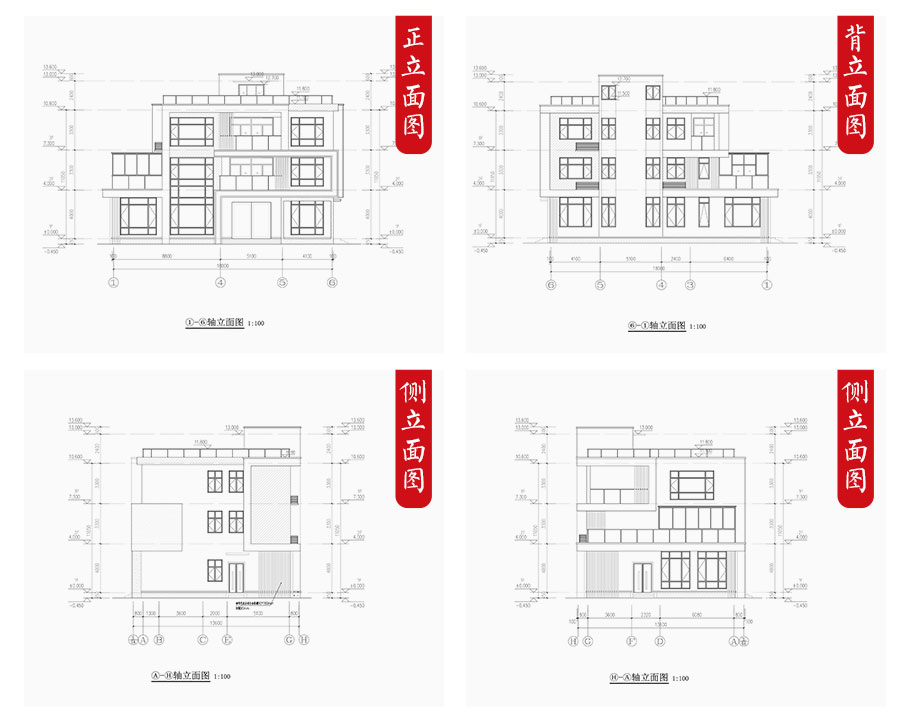 建筑圖: | 建筑平面圖:一層平面圖,二層平面圖,三層平面圖; 建筑立面圖:東立面圖,西立面圖,南立面圖,北立面圖,剖面圖; 大樣圖:樓梯詳圖,細部大樣,門窗大樣 |