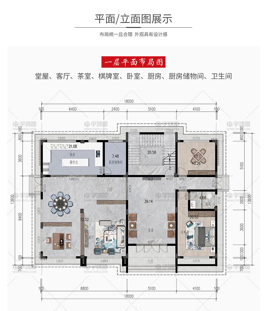 開間:18米 | 進深:13.6米 | 占地面積:226平方米 | 建筑面積:588平方米 |