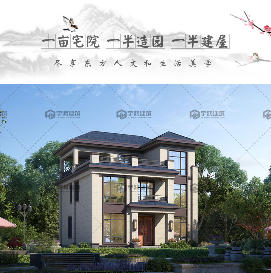 風格:新中式 | 層數:三層 | 結構形式:磚混結構 | 圖紙編號:YH-A-3243 |