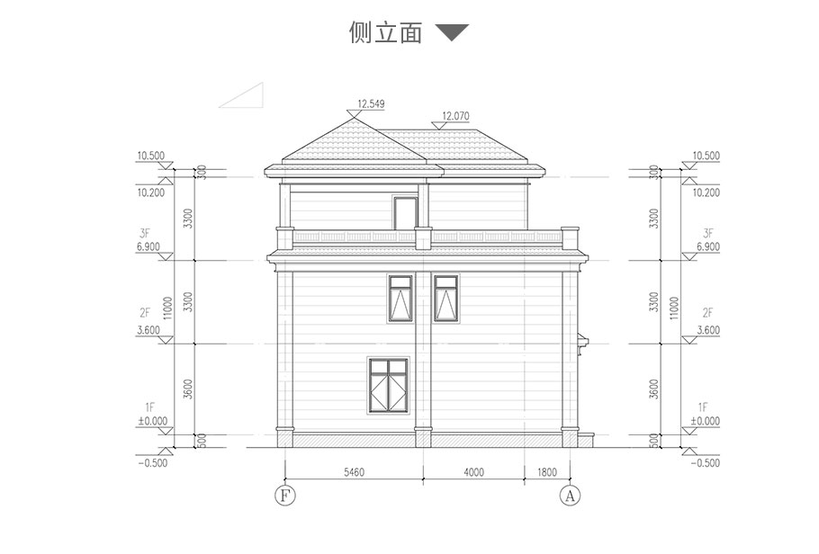給排水圖: | 樓層給排水平面圖:一層給排水平面圖,二層給排水平面圖,三層給排水平面圖; 屋頂給排水平面圖; 衛生間排水系統圖 |