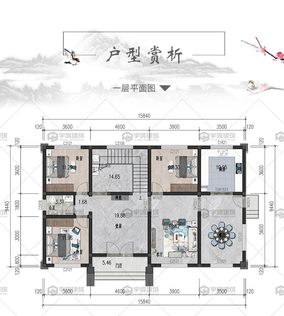 開間:15.8米 | 進深:9.4米 | 占地面積:149平方米 | 建筑面積:293平方米 |