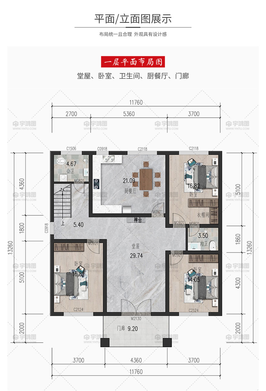 開間:11.7米 | 進深:13.2米 | 占地面積:148平方米 | 建筑面積:286平方米 |