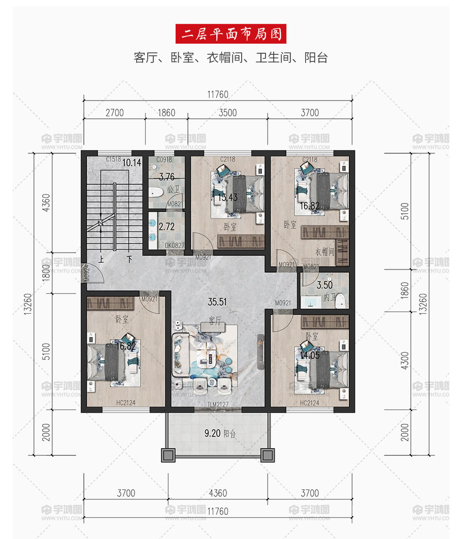 風(fēng)格:歐式 | 層數(shù):二層 | 結(jié)構(gòu)形式:框架結(jié)構(gòu) | 圖紙編號:YH-A-2205 |