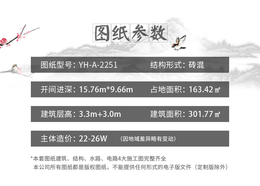 風格:新中式 | 層數:二層 | 結構形式:磚混結構 | 圖紙編號:YH-A-2251 |