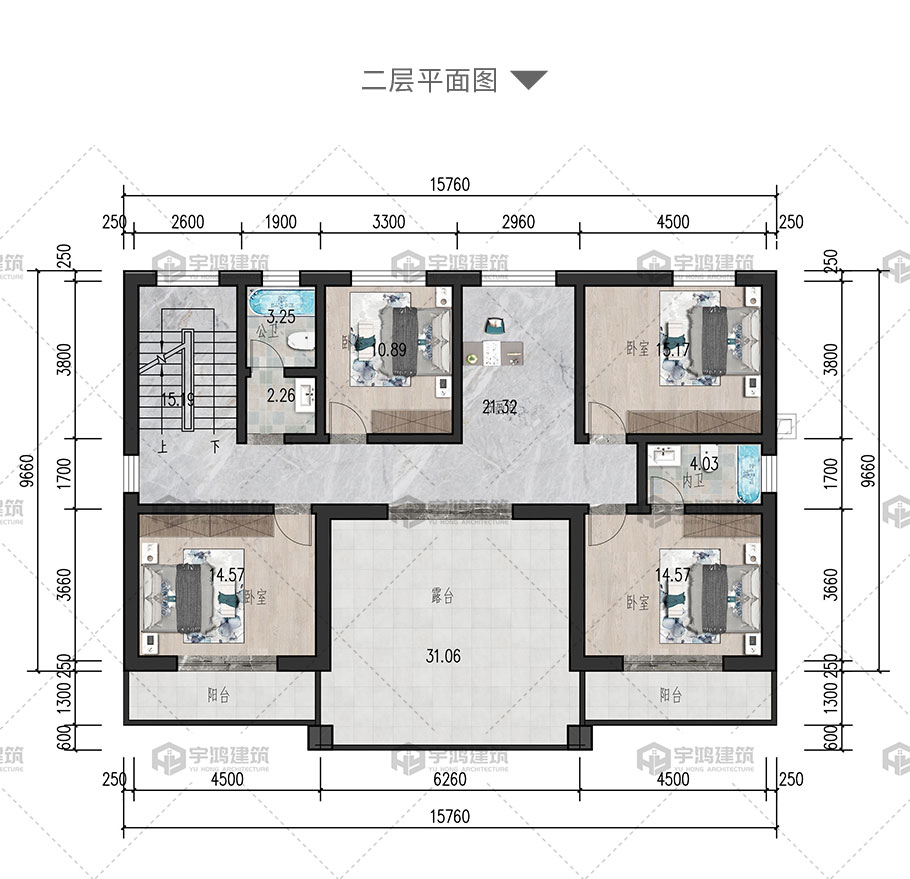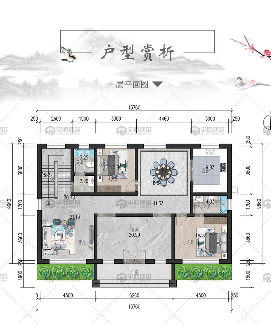 開間:15.76米 | 進深:9.6米 | 占地面積:163.4平方米 | 建筑面積:301.7平方米 |