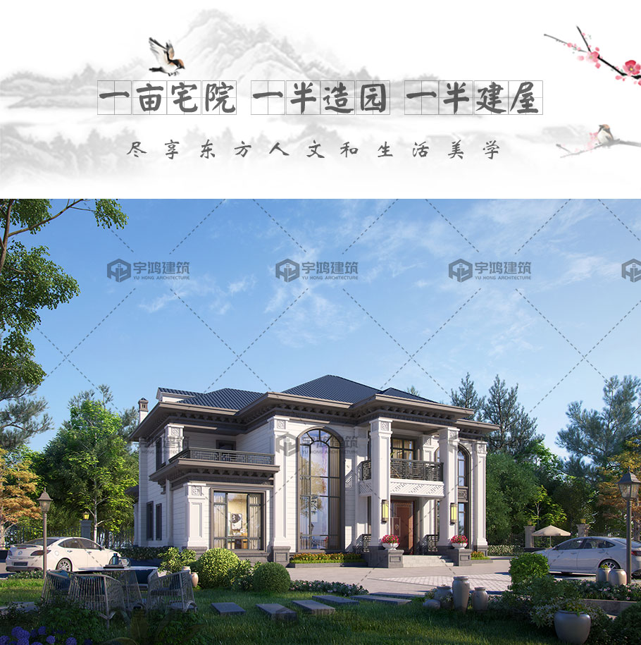 兩層框架結(jié)構(gòu)新中式別墅占地223平自建別墅