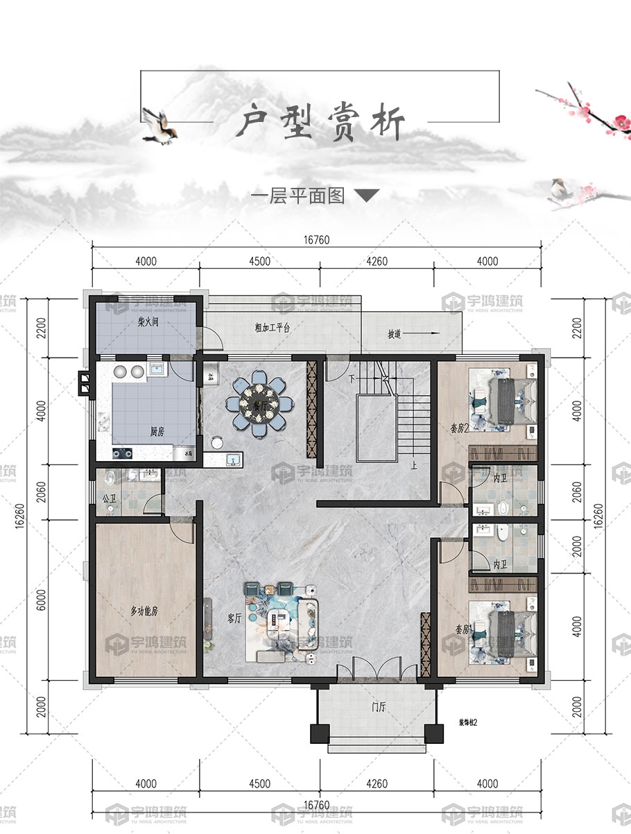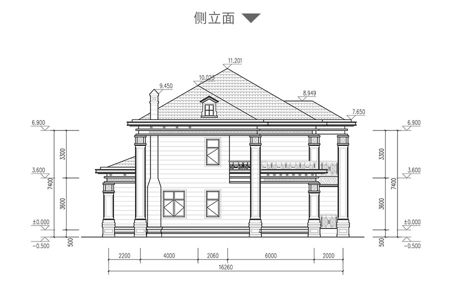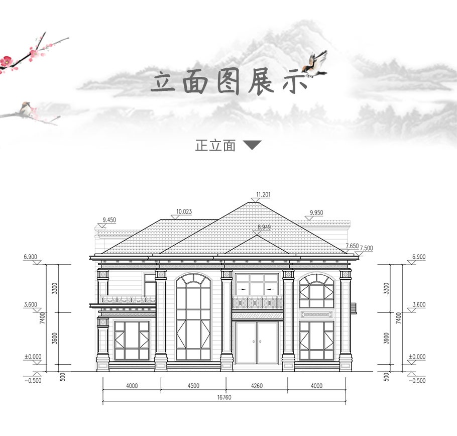 成品圖紙>兩層框架結(jié)構(gòu)新中式別墅占地223平自建別墅