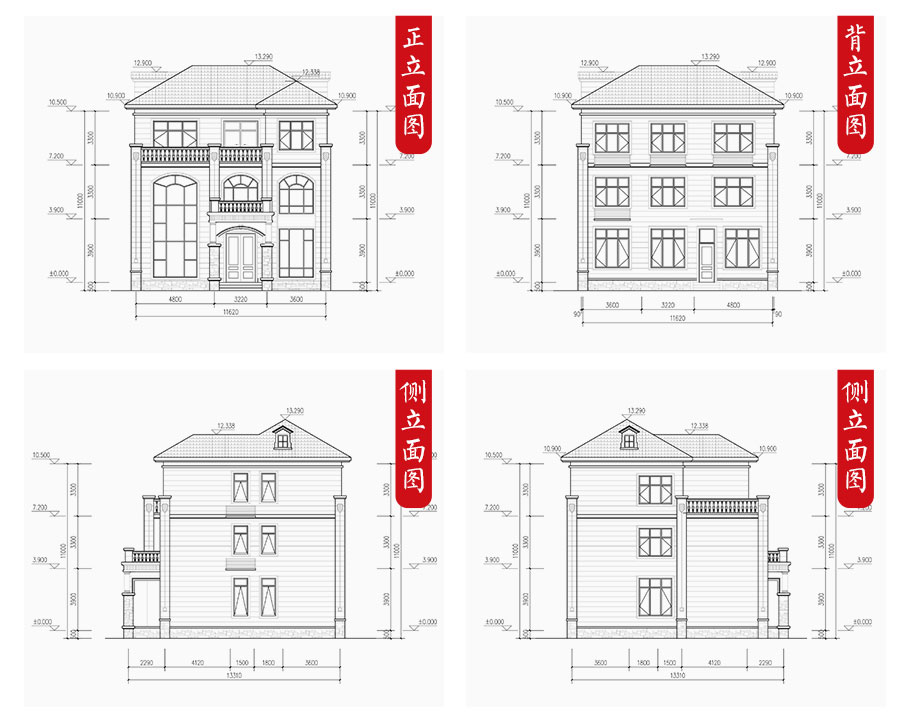 建筑平面圖:一層平面圖,二層平面圖,三層平面圖; 建筑立面圖:東立面圖,西立面圖,南立面圖,北立面圖,剖面圖; 大樣圖:樓梯詳圖,細(xì)部大樣,門窗大樣 |
