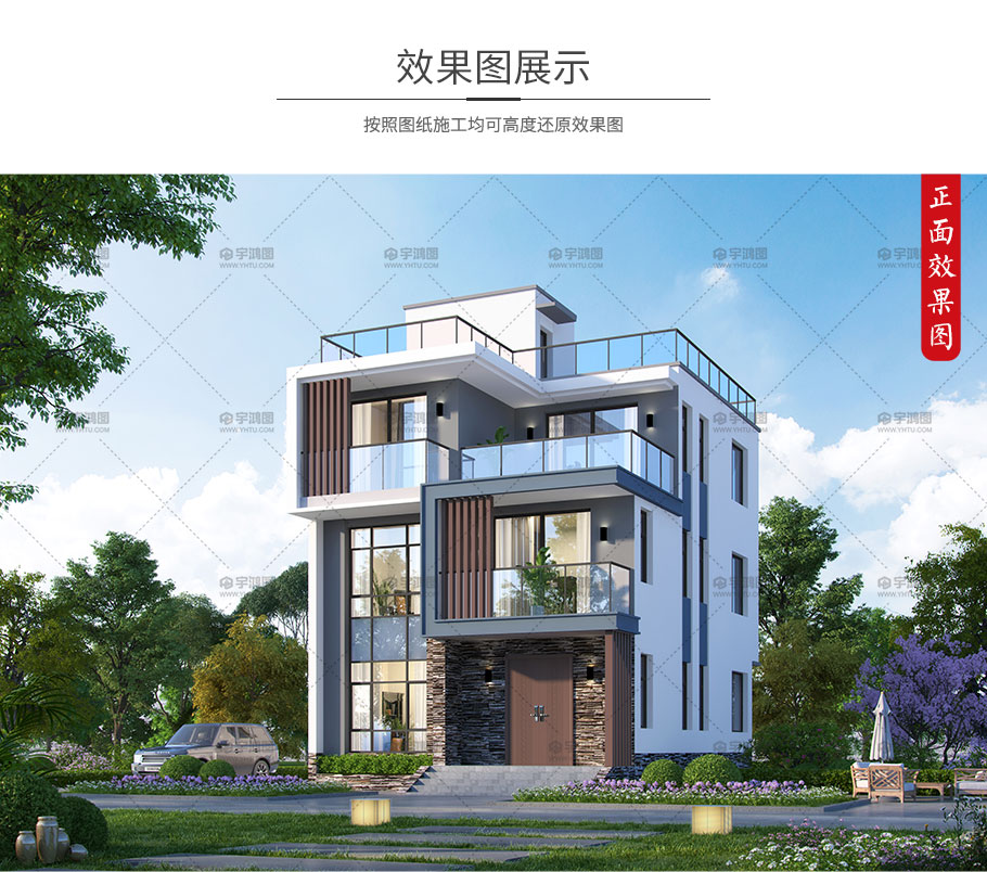 造價便宜的三層現代別墅圖紙框架結構占地95平