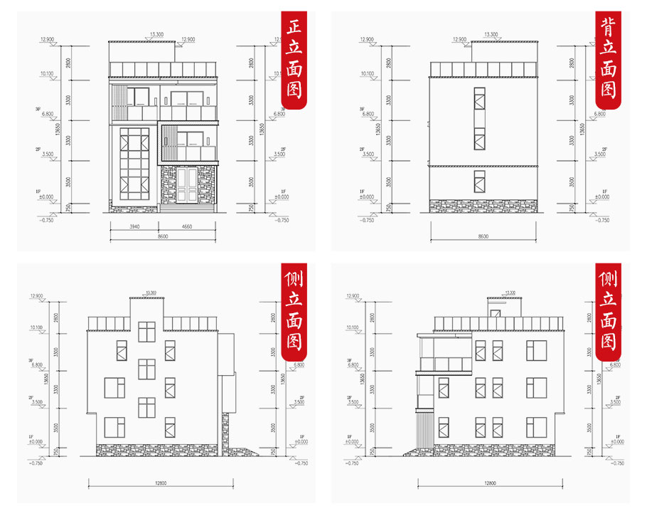 建筑平面圖:一層平面圖,二層平面圖,三層平面圖; 建筑立面圖:東立面圖,西立面圖,南立面圖,北立面圖,剖面圖; 大樣圖:樓梯詳圖,細部大樣,門窗大樣 |