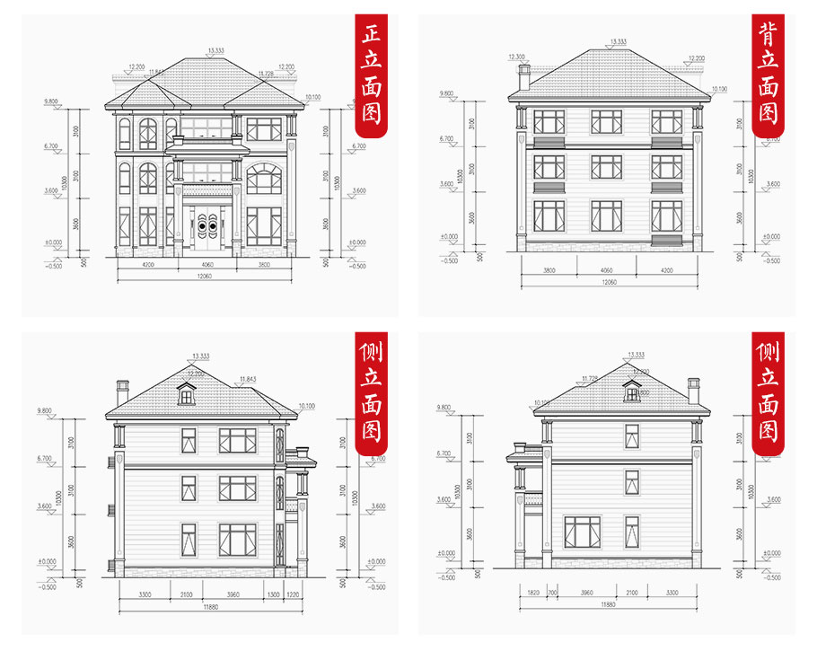 建筑平面圖:一層平面圖,二層平面圖,三層平面圖; 建筑立面圖:東立面圖,西立面圖,南立面圖,北立面圖,剖面圖; 大樣圖:樓梯詳圖,細(xì)部大樣,門窗大樣 |