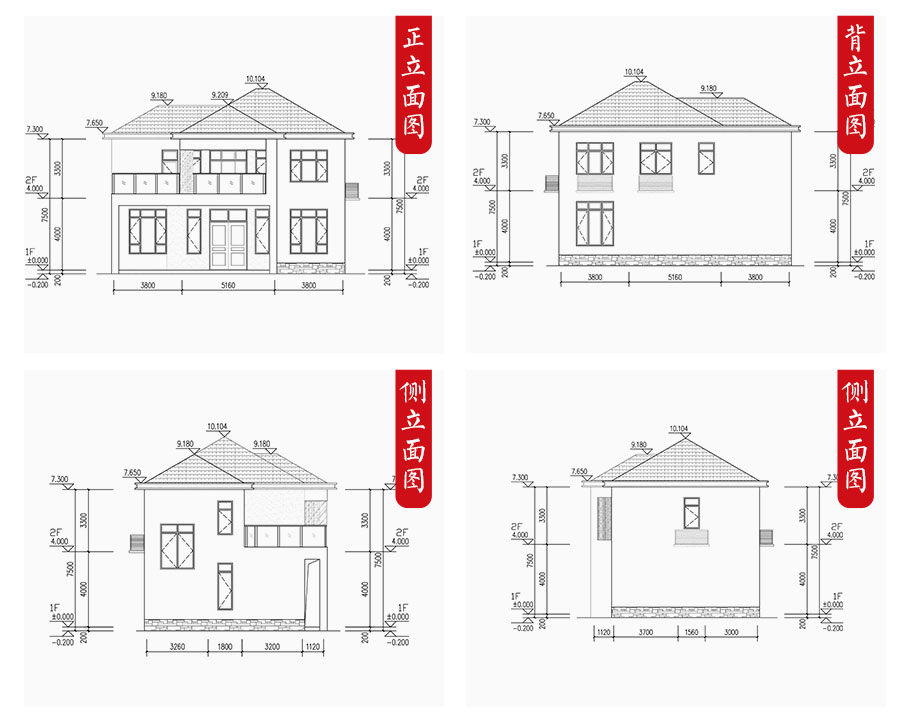 建筑平面圖:一層平面圖,二層平面圖; 建筑立面圖:東立面圖,西立面圖,南立面圖,北立面圖,剖面圖; 大樣圖:樓梯詳圖,細(xì)部大樣,門窗大樣 |
