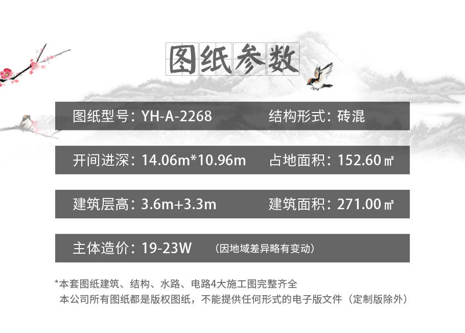 風格:新中式 | 層數(shù):二層 | 結構形式:磚混結構 | 圖紙編號:YH-A-2268 |