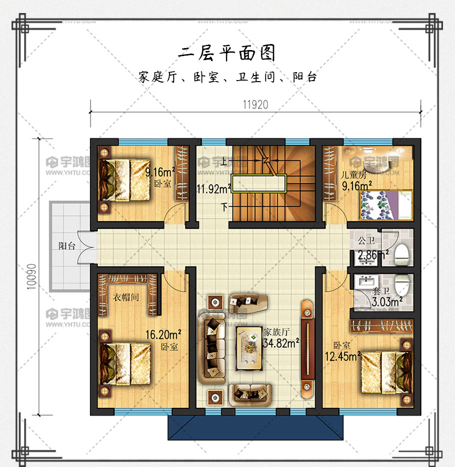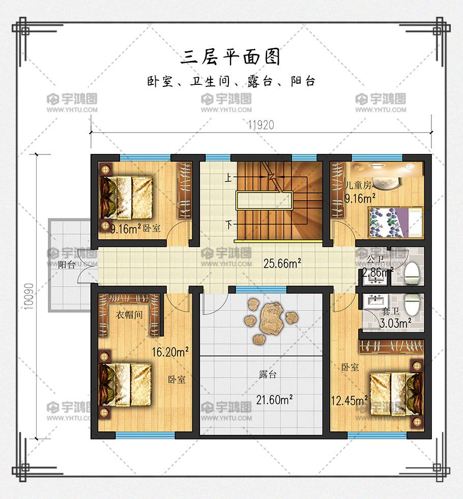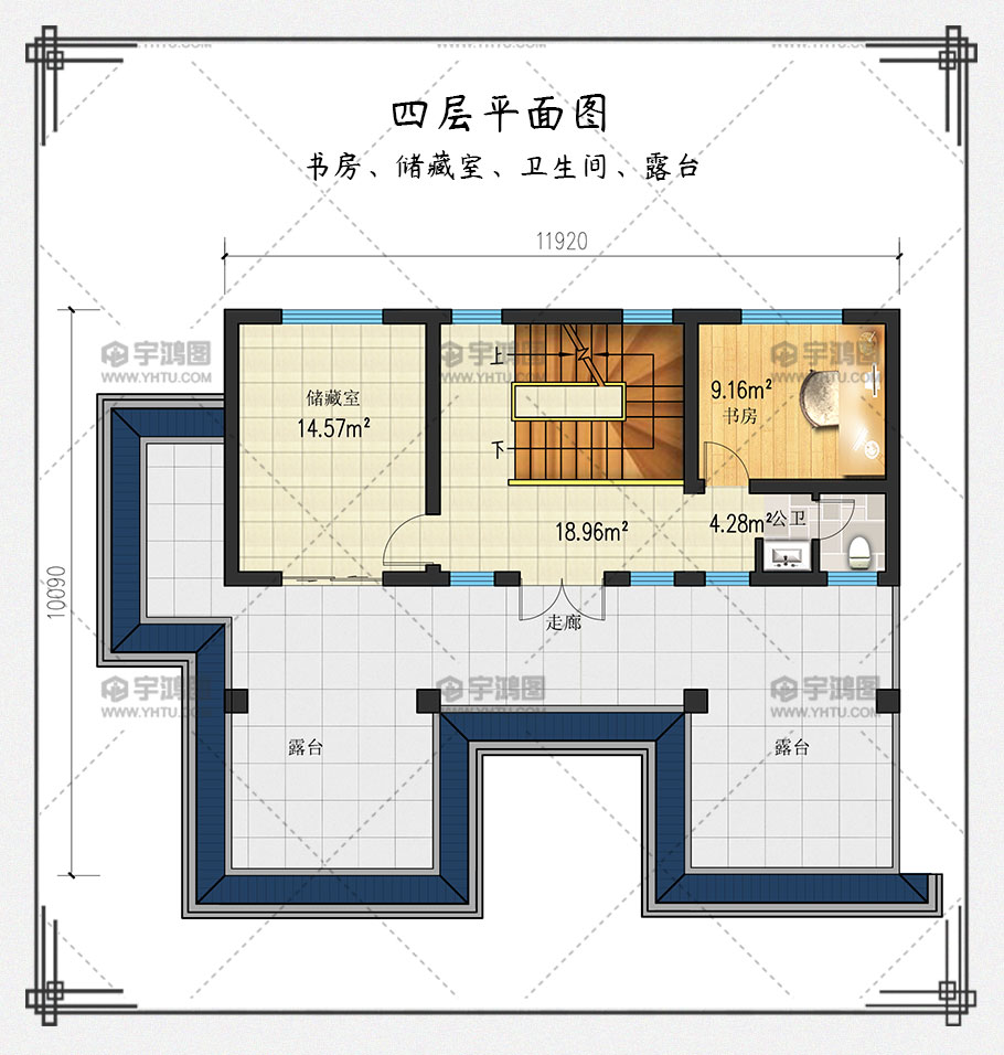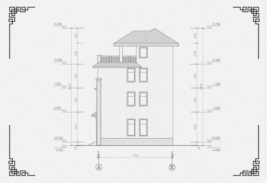 成品圖紙>12x10米四層中式農(nóng)村別墅設(shè)計圖紙