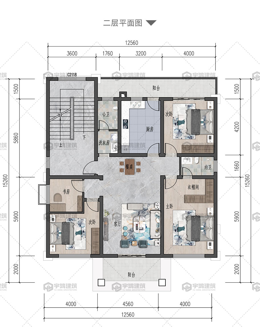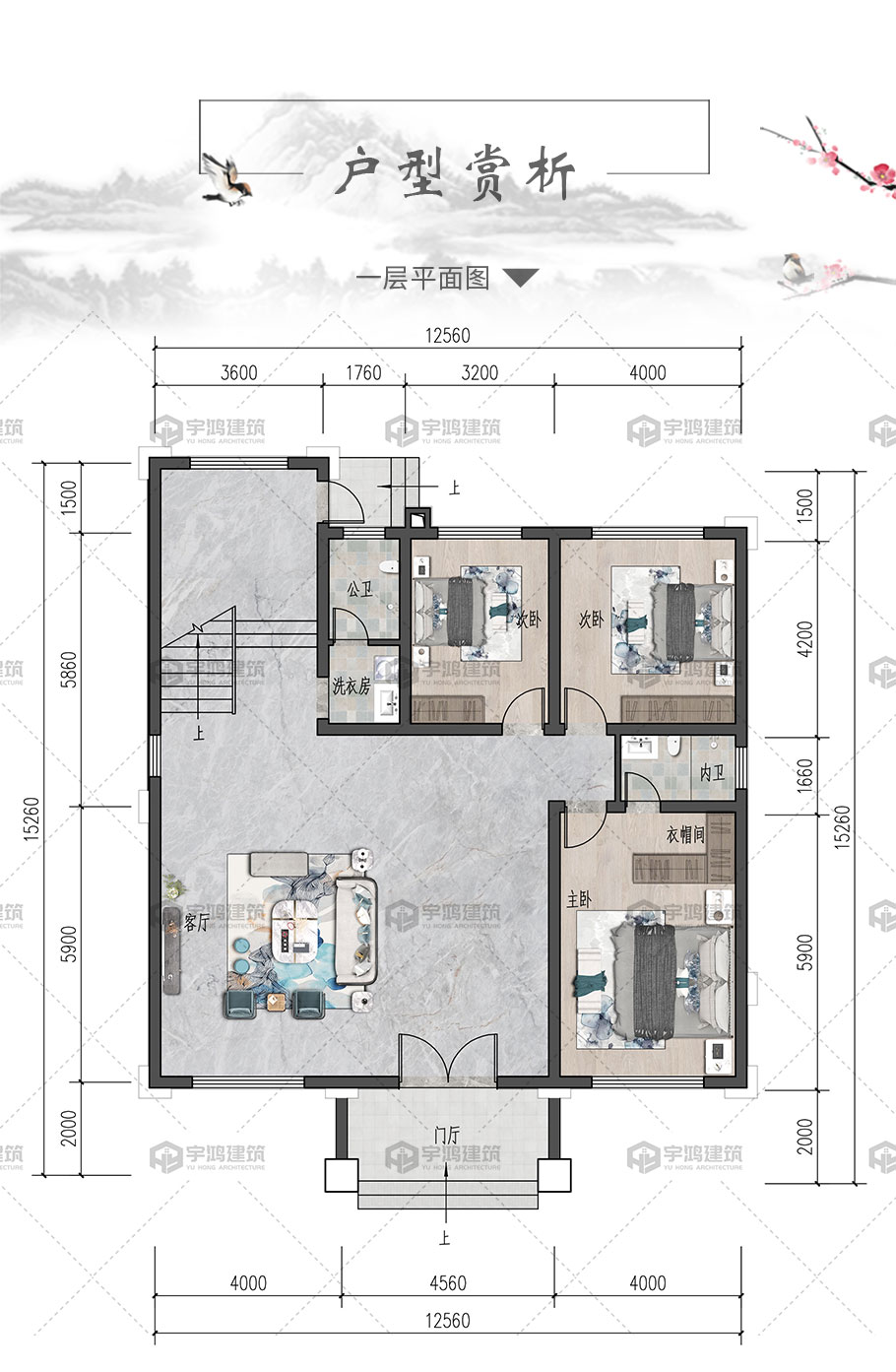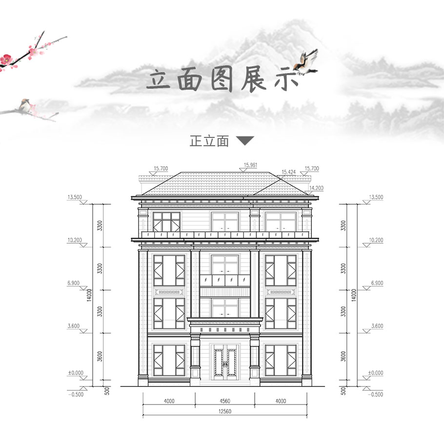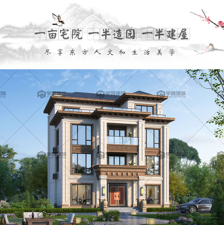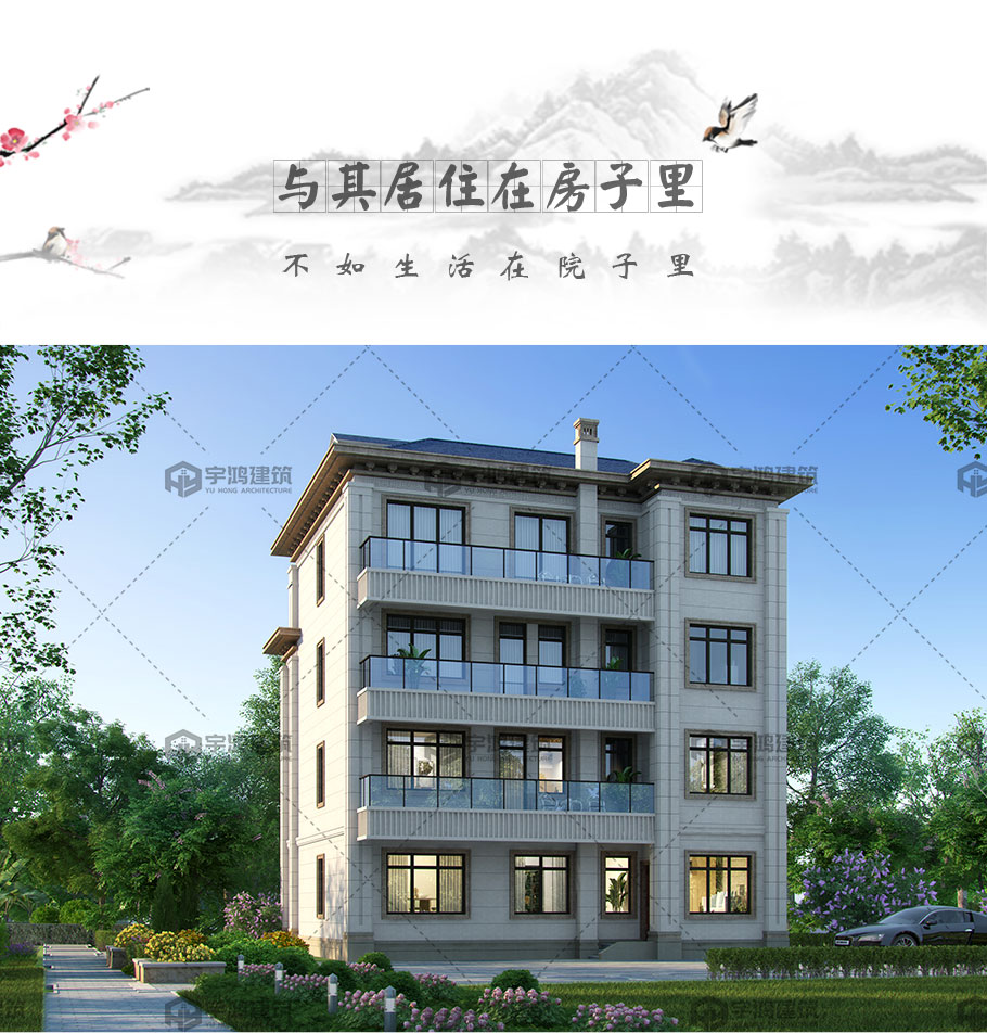 風格:新中式 | 層數:四層 | 結構形式:框架結構 | 圖紙編號:YH-A-4045 |