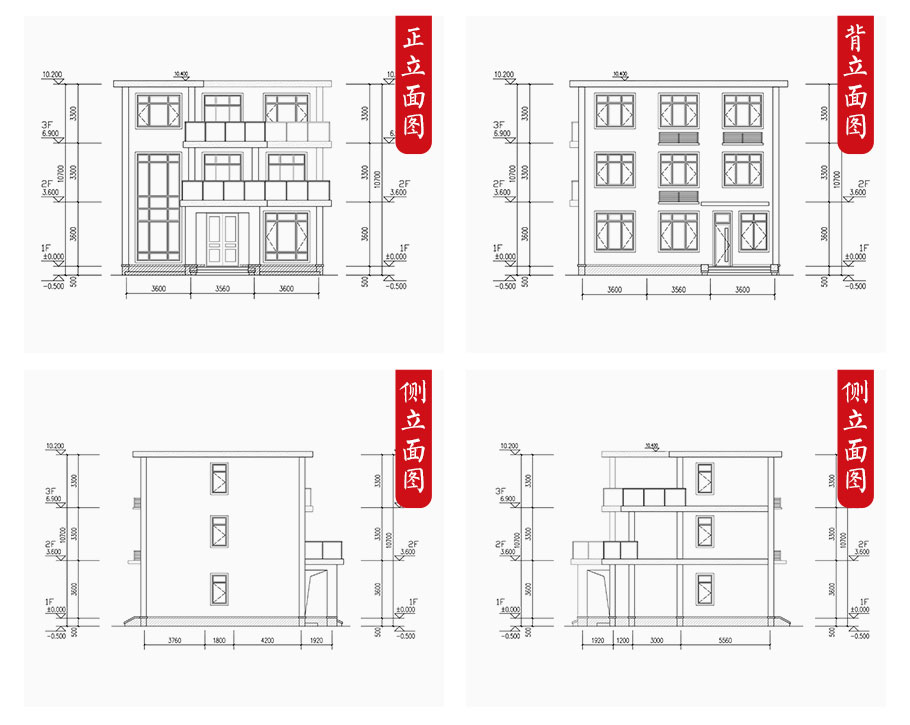 建筑平面圖:一層平面圖,二層平面圖,三層平面圖; 建筑立面圖:東立面圖,西立面圖,南立面圖,北立面圖,剖面圖; 大樣圖:樓梯詳圖,細(xì)部大樣,門窗大樣 |