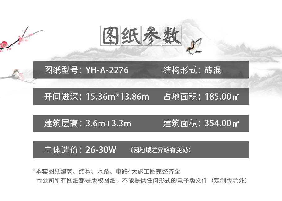 成品圖紙>占地185平兩層新中式自建別墅設(shè)計(jì)圖紙