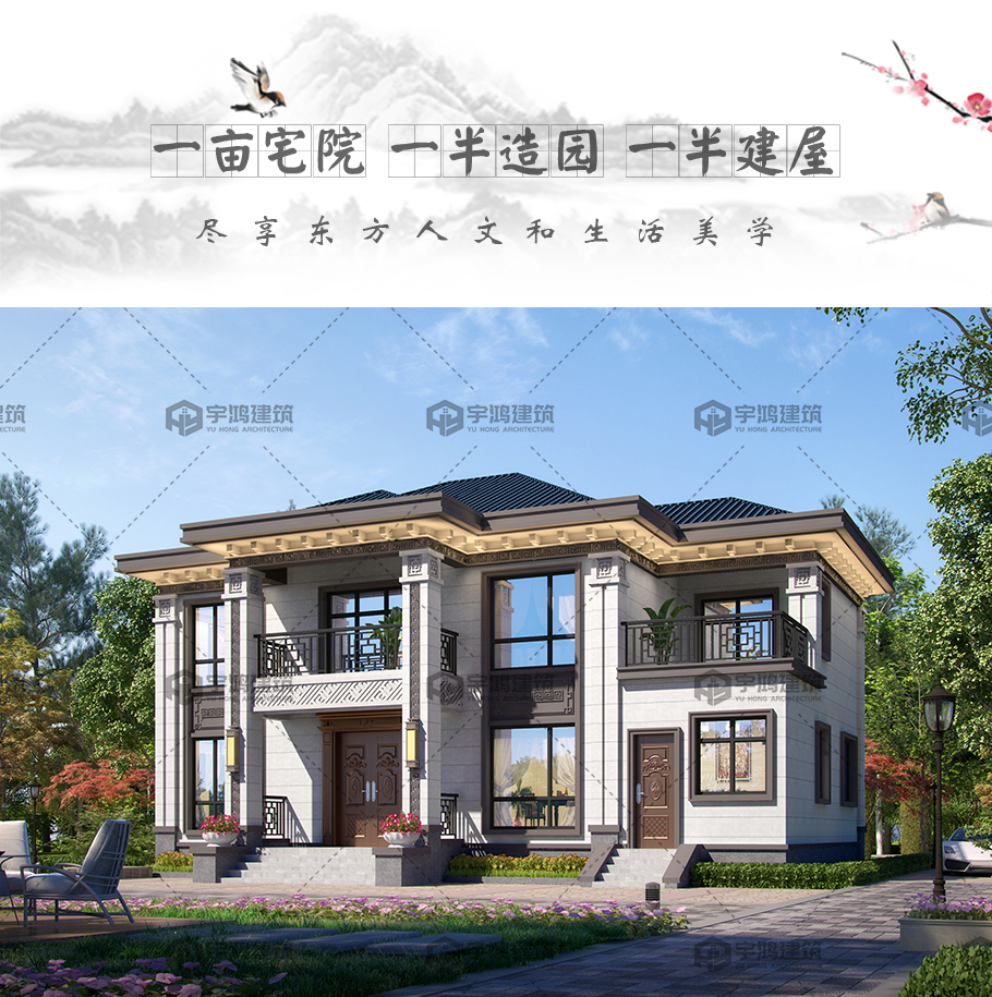 占地185平兩層新中式自建別墅設(shè)計(jì)圖紙