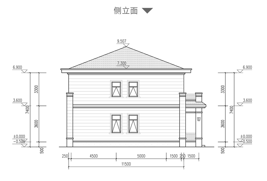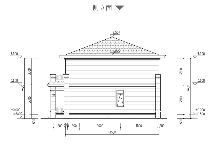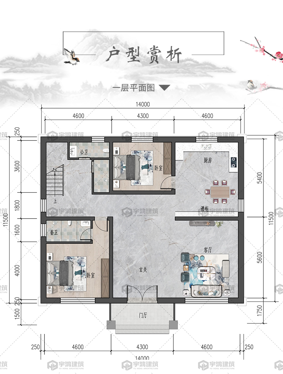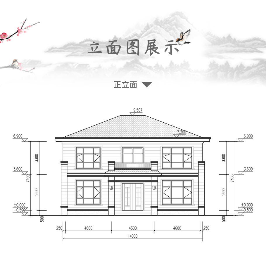 開間:14米 | 進深:11.5米 | 占地面積:165平方米 | 建筑面積:326平方米 |