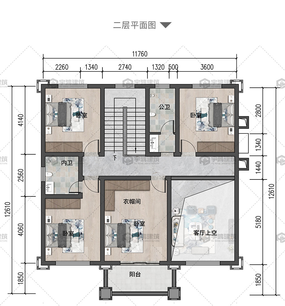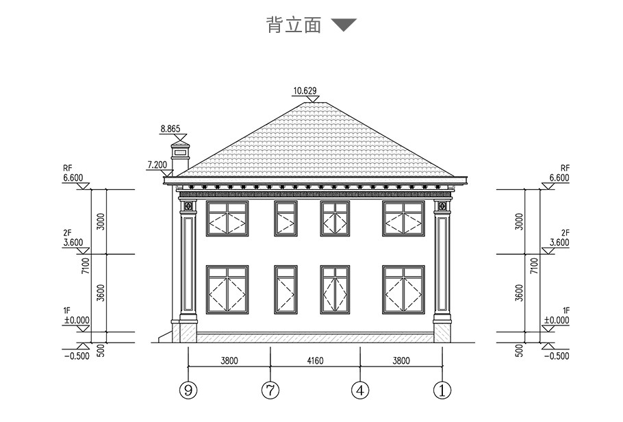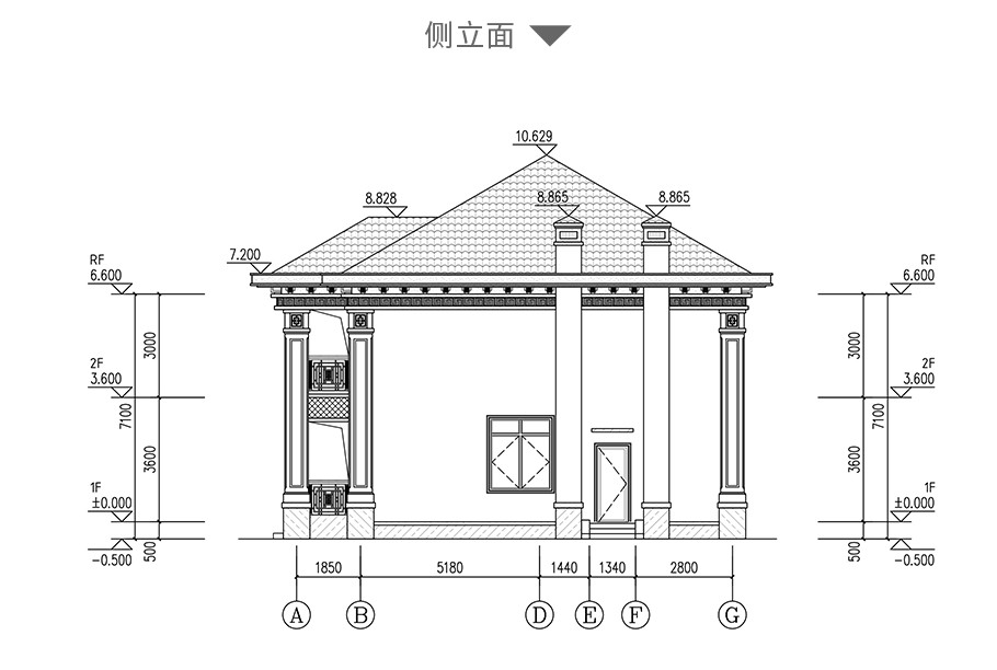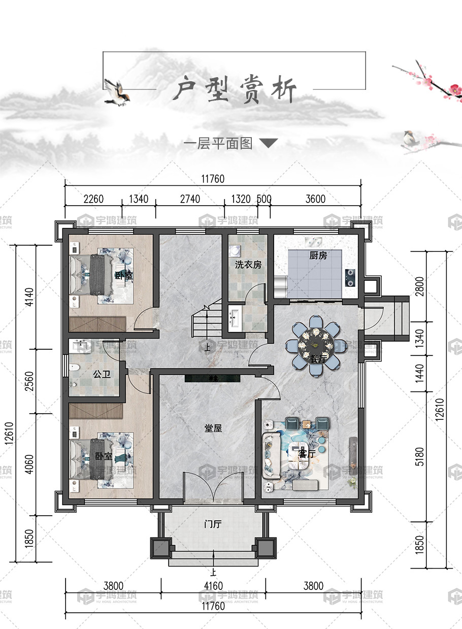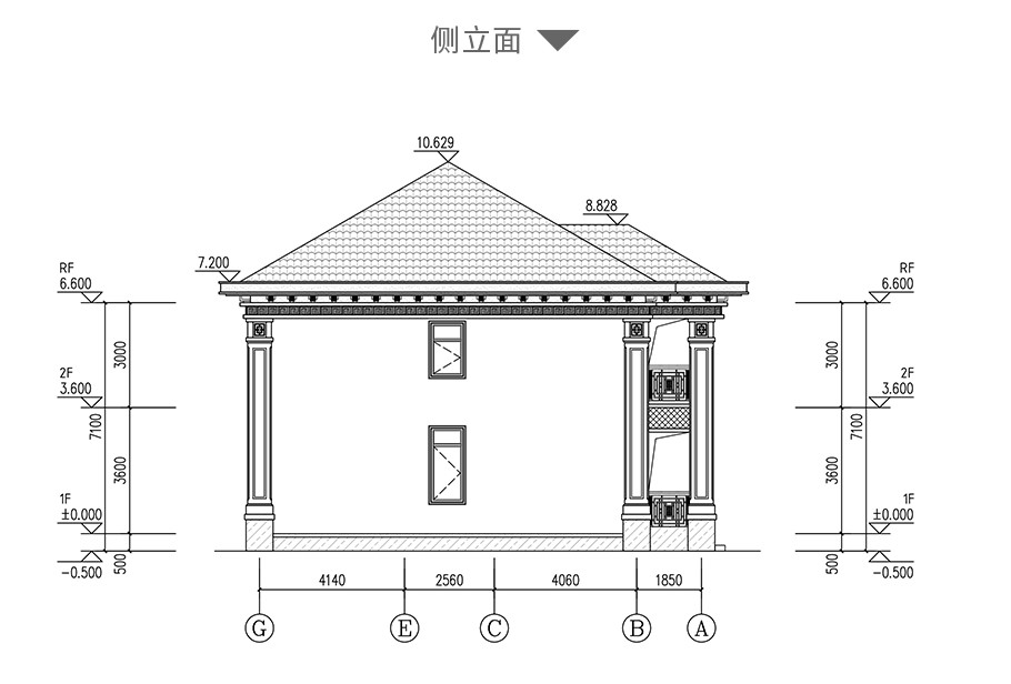 開(kāi)間:11.7米 | 進(jìn)深:12.6米 | 占地面積:135.8平方米 | 建筑面積:250.5平方米 |