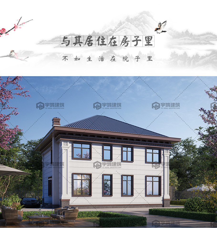 風(fēng)格:新中式 | 層數(shù):二層 | 結(jié)構(gòu)形式:磚混結(jié)構(gòu) | 圖紙編號(hào):YH-2-3566 |