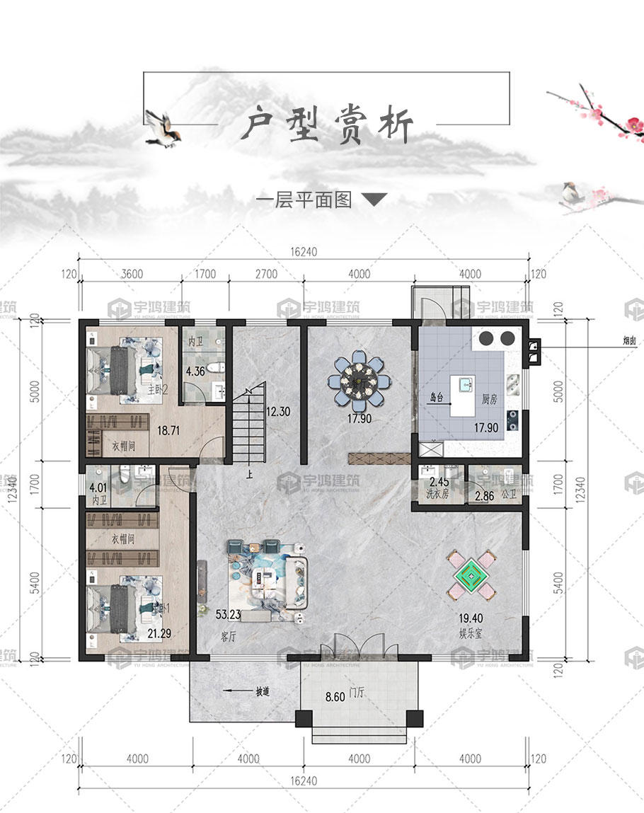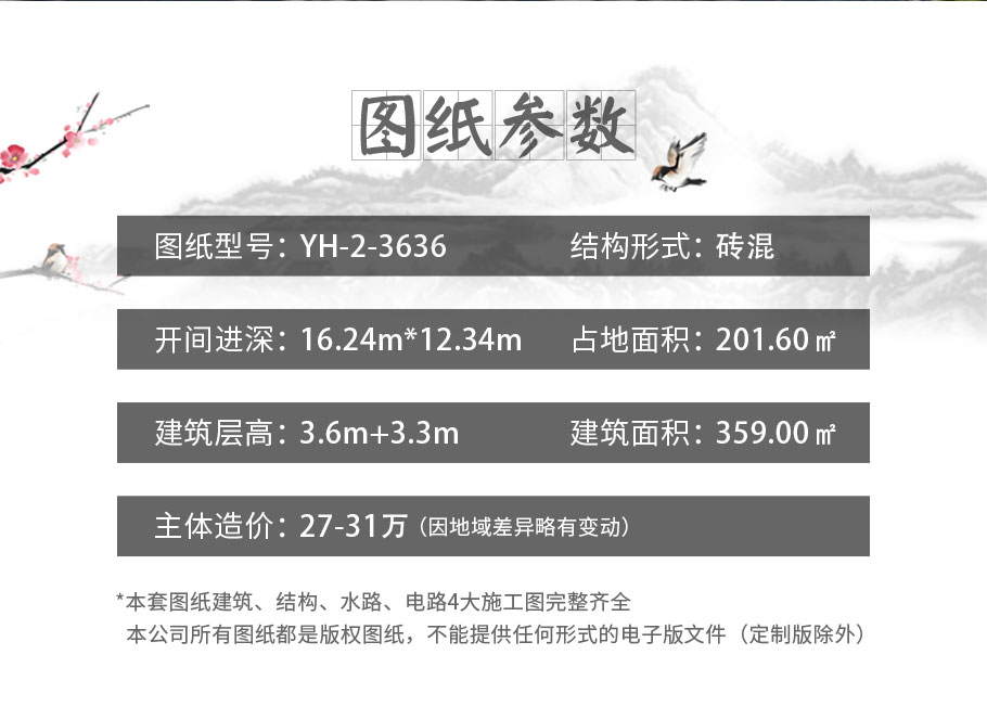 風格:新中式 | 層數:二層 | 結構形式:磚混結構 | 圖紙編號:YH-2-3636 |