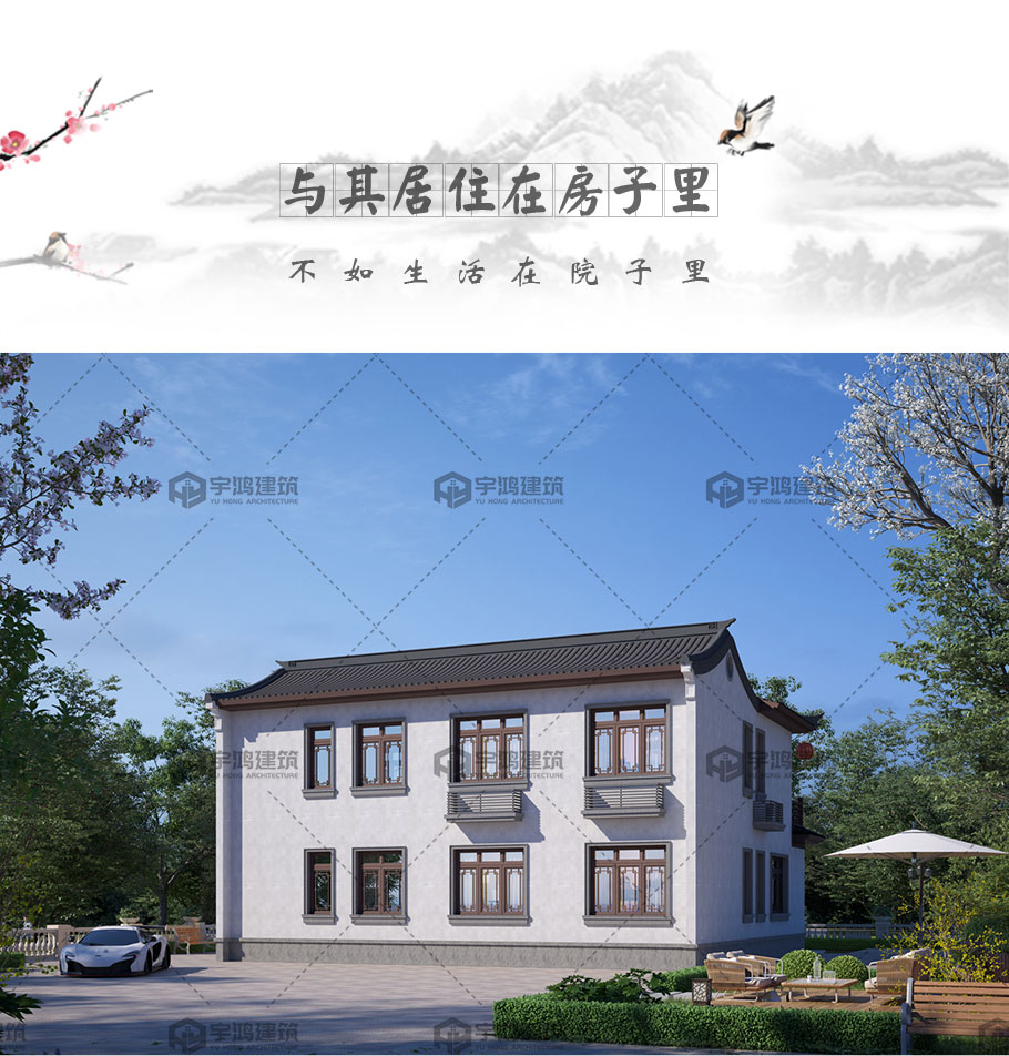 風格:中式 | 層數:二層 | 結構形式:框架結構 | 圖紙編號:YH-2-6525 |