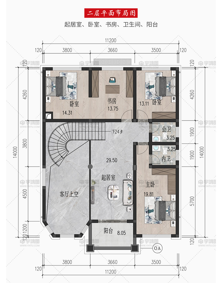 風格:歐式 | 層數:二層 | 結構形式:磚混結構 | 圖紙編號:YH-2-3093 |
