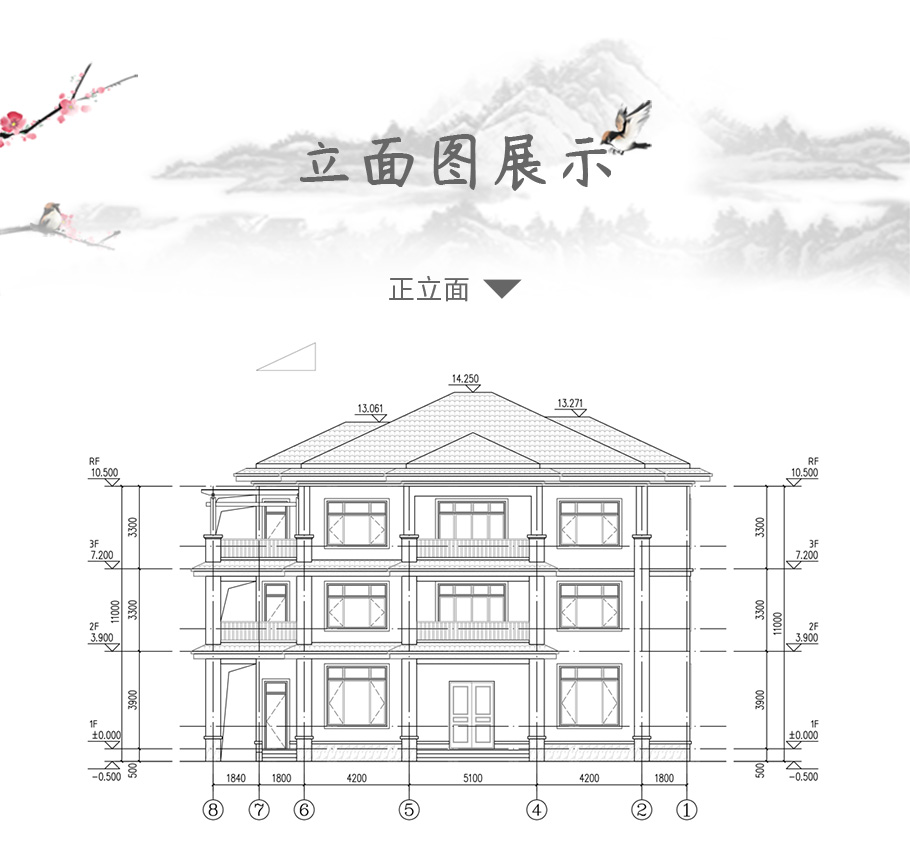 成品圖紙>新中式三層大氣別墅占地224平磚混結(jié)構(gòu)