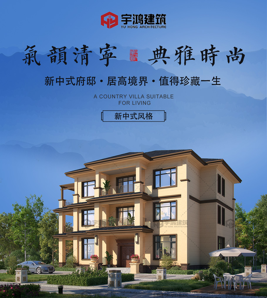 新中式三層大氣別墅占地224平磚混結(jié)構(gòu)