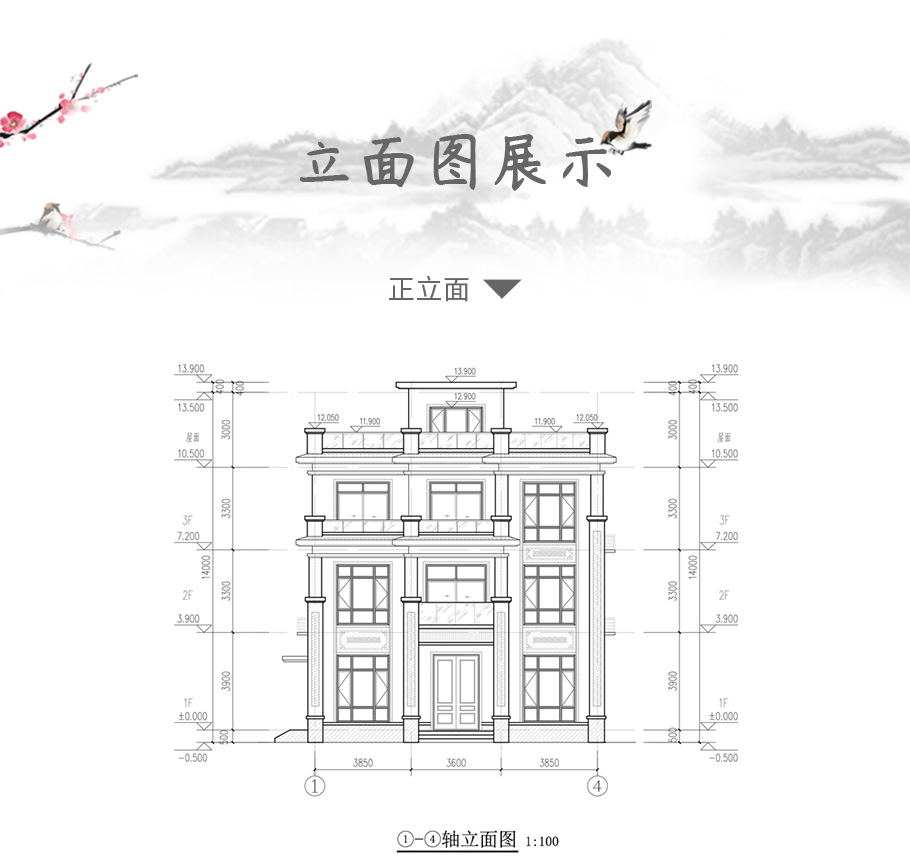 成品圖紙>新中式風(fēng)格三層別墅占地141平自建別墅設(shè)計(jì)圖
