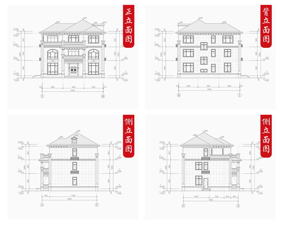 建筑平面圖:一層平面圖,二層平面圖,三層平面圖; 建筑立面圖:東立面圖,西立面圖,南立面圖,北立面圖,剖面圖; 大樣圖:樓梯詳圖,細部大樣,門窗大樣 |