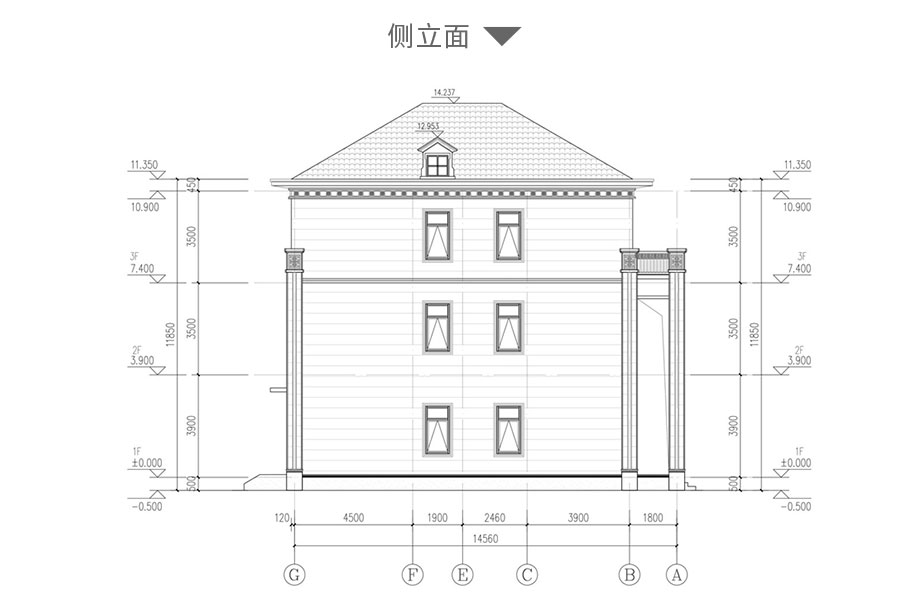 建筑平面圖:一層平面圖,二層平面圖,三層平面圖; 建筑立面圖:東立面圖,西立面圖,南立面圖,北立面圖,剖面圖; 大樣圖:樓梯詳圖,細部大樣,門窗大樣 |