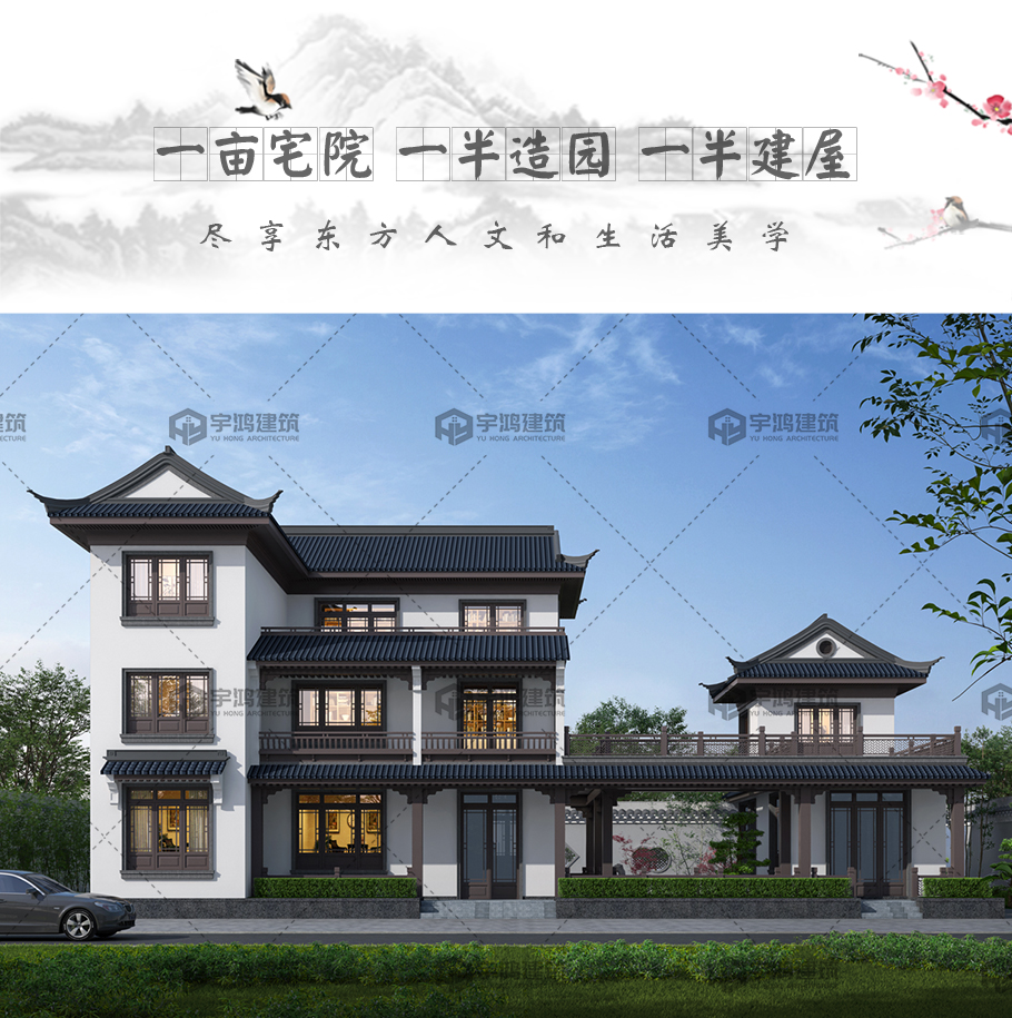 228平新款大氣中式三層別墅設計圖紙及效果圖