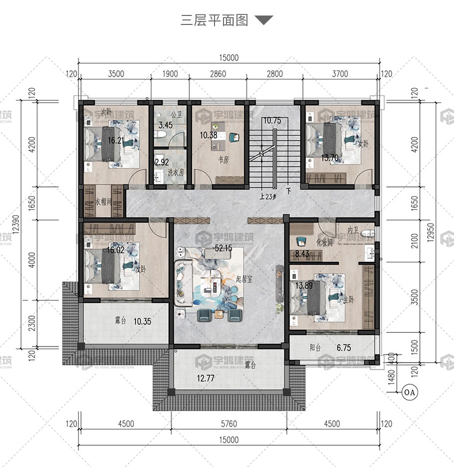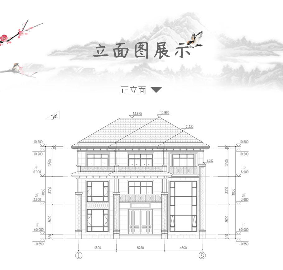 成品圖紙>203平帶露臺三層新中式全套別墅設(shè)計圖紙