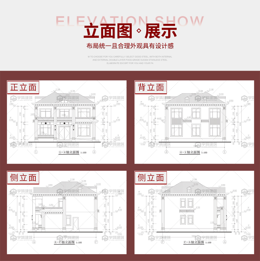 建筑平面圖:一層平面圖,二層平面圖; 建筑立面圖:東立面圖,西立面圖,南立面圖,北立面圖,剖面圖; 大樣圖:樓梯詳圖,細(xì)部大樣,門窗大樣 |