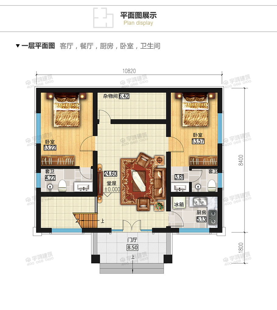 開間:10.82米 | 進深:10.2米 | 占地面積:90.9平方米 | 建筑面積:176.2平方米 |