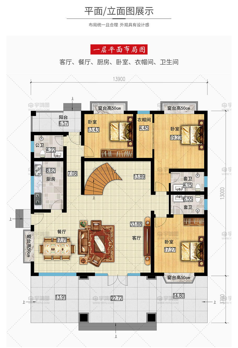 開(kāi)間:13.9米 | 進(jìn)深:16.7米 | 占地面積:180.7平方米 | 建筑面積:349平方米 |